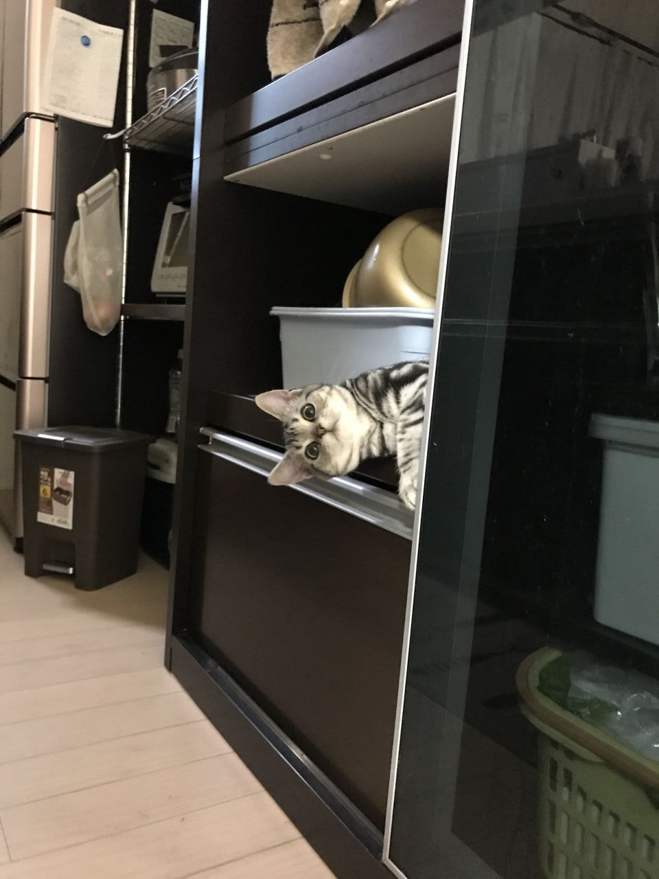 柵を乗り越えキッチンに侵入したので、名前を呼ぶとひょこりこの顔、たまらん…