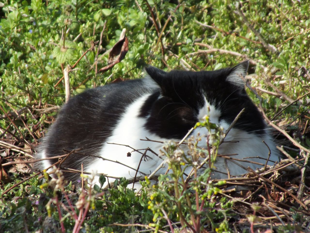草むらに猫が気持ちよさそうに寝ていたんで声を掛けたんですが、「ほっといて」って感じで相手にされませんでした。